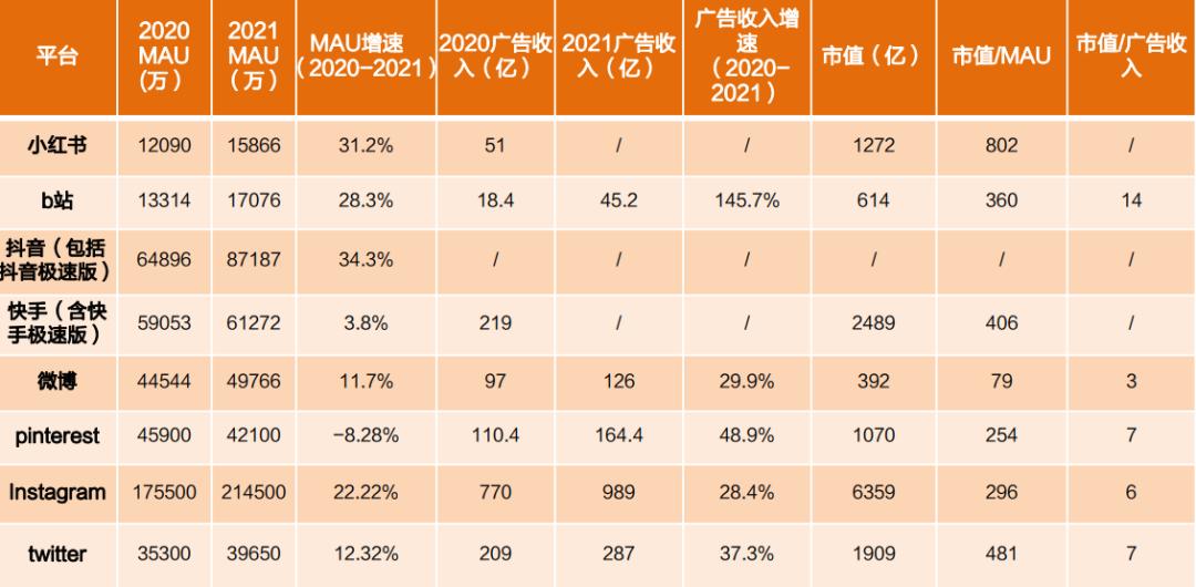 结构上,80% 的广告收入占比,和小红书“种草”属性极强、但“拔草”功能相对较弱,其实是匹配的,但这样的收入占比又是不利于社区发展的。和很多平台一样,小红书也面临着平衡收入结构的难题。相比于其他互联网公司,例如 B 站、抖音、快手,小红书在广告收入上仅高于 B 站,但 2021年 B 站的广告收入仅占总收入的 23.3%。