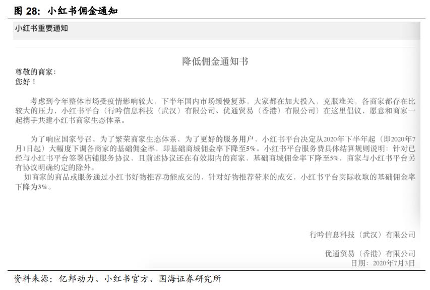目前小红书的估值是字节的 1/9,但收入方面有些能力不足、且偏科严重。根据晚点 LastPost 的消息,小红书 2020 年营收约为 7.5 亿至 10 亿美金,包括广告和电商两部分。广告业务营收占比约80%,电商业务占比约 20%。其中广告营收实现 3 倍增长;电商 GMV(含自营和第三方电商)达到 10 亿美元,电商业务整体货币化率预计在 15%~20%。对于货币化率这一块,小红书在 2020 年 7 月出过一个降低佣金的通知,为了缓解疫情下市场的压力,将商城基础佣金率下降至 5%。相较之下,快手的电商货币化率为 1% 多一点,拼多多大概在 3%,淘宝为 3.7%,京东 7% 左右。