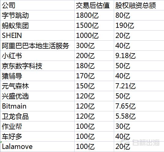 估值超过 100 亿美金的中国独角兽企业 数据来源:Crunchbase