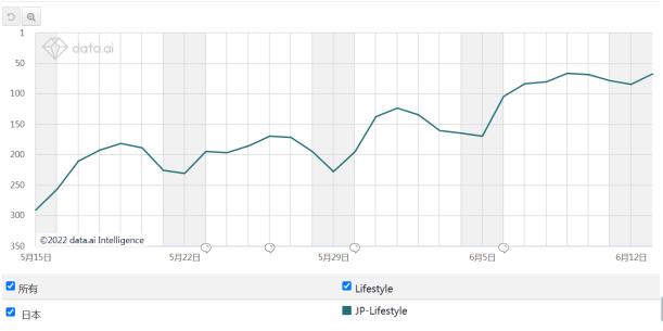 Uniik 在日本 iPhone 设备上 5.15-6.13 历史排名变化 来源:data.ai