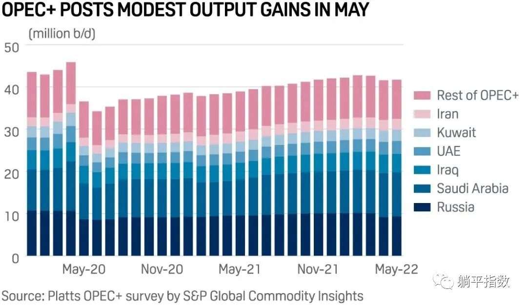自2021年初,欧佩克+一直采用“渐进式增产”的策略,该组织的产量一直处于逐步增加的状态。即便受到今年俄乌事件的影响,4月份之后的产量也并没下降很多。