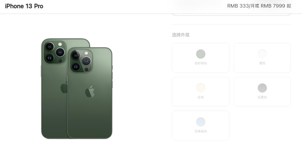 还有去年饱受瞩目的 iPhone 12 拖鞋蓝、紫色;今年 13 Pro 的远峰蓝、仓岭绿...