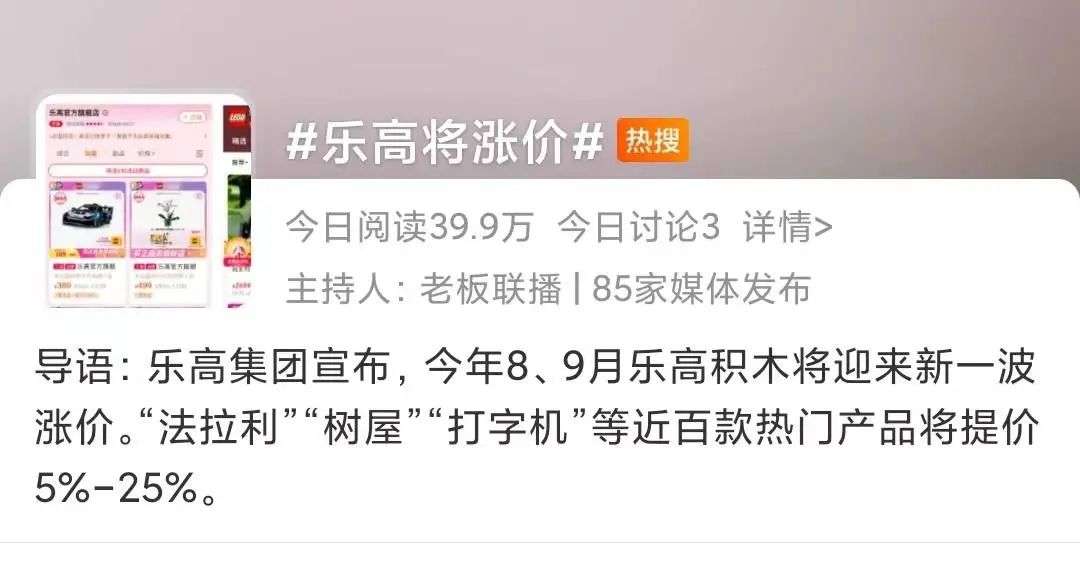 近日,微博话题#乐高将涨价#冲上热搜,并很快引发网友的热议。