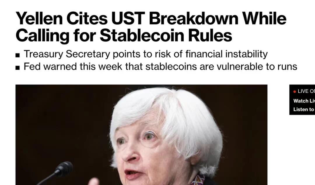 那么会不会全球央行加码直接限制禁止使用比特币呢?目前来看可能性不大。比如,美国财政部长Janet Yellen就在Luna事件后表示,Terra的崩盘再次体现了稳定币的风险,表示要进一步加强稳定币的监管尽快立法规范;美国金融稳定委员会主席Klaas Knot提出了加密货币行业未来可能损害货币网络的担忧;欧盟委员会正在考虑对稳定币的广泛使用进行严格限制,要求在每日交易量超过 100 万时停止发行稳定币等等。