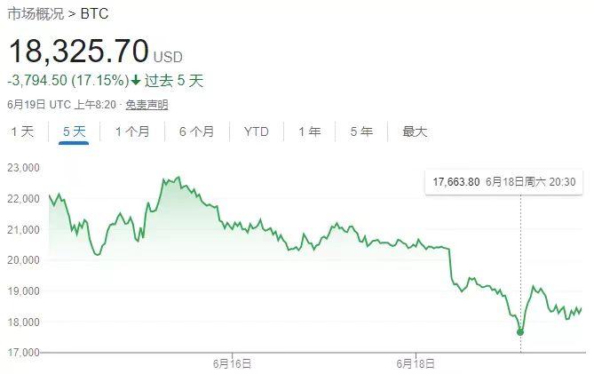 值得注意的是,比特币一度跌破2万美元,意味着过去7个月时间,比特币价格从2021年11月创下的历史高点69000美元,骤跌约70%。