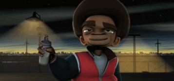 这个动画跟游戏开头场景是一样的,胖保安跟他的狗撞上了一个正在涂鸦的少年,这就是 “ 梦 ” 开始的地方。