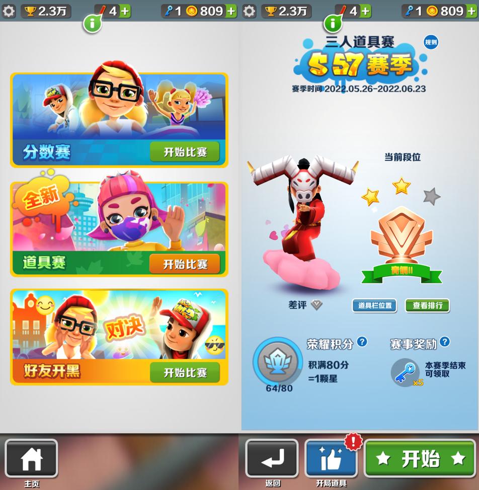 道具赛、分数赛、好友赛▼