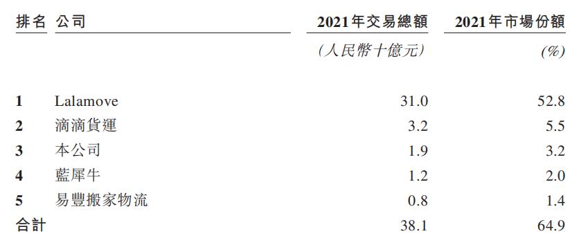 仅次于货拉拉和滴滴货运,国内老三这成绩听起来或许还挺拉风的。