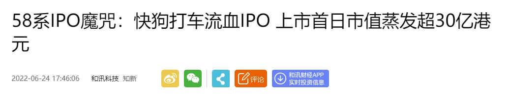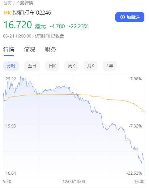 然而股价的悲喜可并不相通,同一天,终于在港交所上市的快狗打车,却来上演了个自由落体,22% 的股价说没就没。