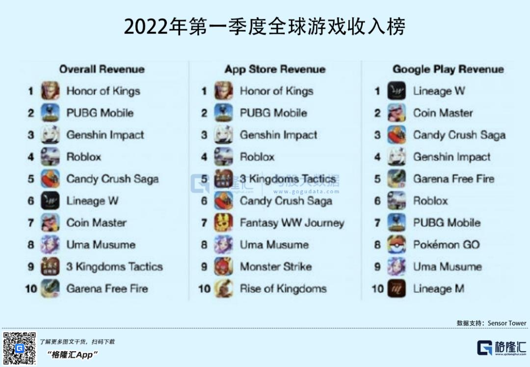 公开数据显示,2021年《原神》在Google Play和iOS平台上的收入超18亿美元;2022年第一季度全球手游收入来看,腾讯的《王者荣耀》凭借7. 35 亿美元的收入排在第一,第二名是《绝地求生》6.43 亿美元,第三名是米哈游的《原神》,收入为5.51 亿美元。值得注意的是,《原神》后续维护和运营成本每年约两亿美元。