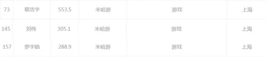 其中,35岁的蔡浩宇身价553.5亿元人民币,排名73位,一举成为新晋济南首富;刘伟和罗宇皓分别以305.1亿元、288.9亿元的身家,排在145位、157位。