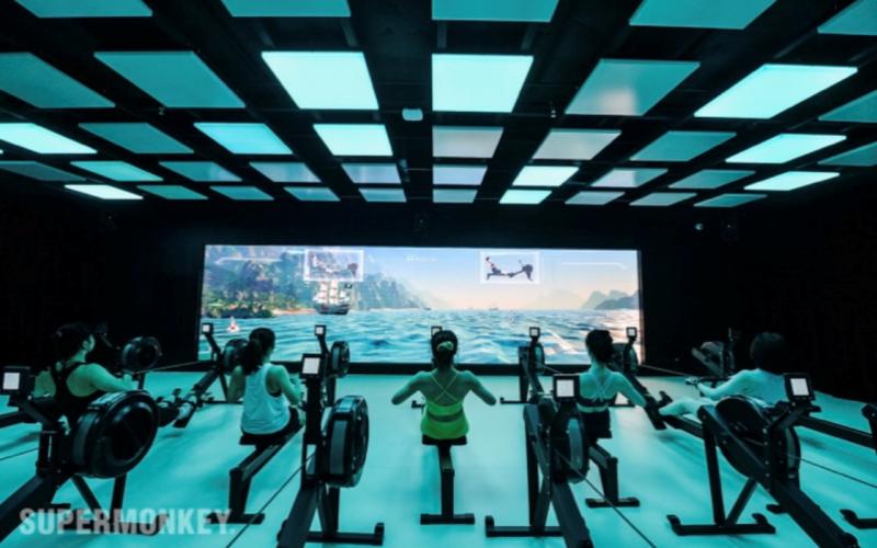官方介绍,SUPERMONKEY META超猩剧幕特有沉浸式剧幕教室,配备全景大屏及智能灯光音响等系统,为不同运动基础的人群提供多元化的运动课程选择、科技化的运动空间体验、有温度社群活动陪伴。