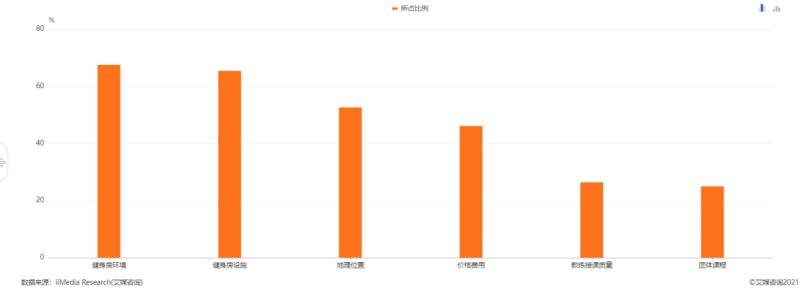 据艾媒咨询《2022年中国健身房消费者主要关注因素调查》显示,健身房环境、设施和地理位置排在前三位,而价格费用、教练授课质量和团体课程则为次要因素,分别达46.1%、26.4%及25%。