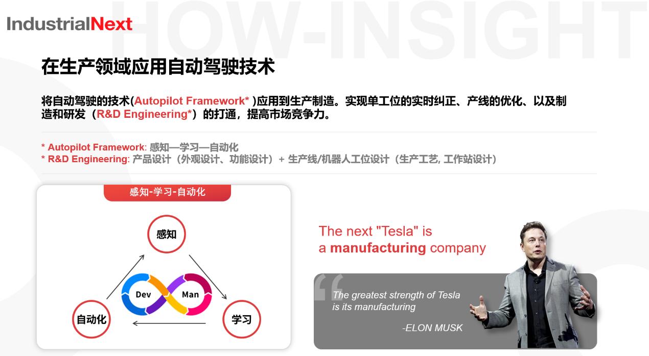 Industrial Next选择从工厂内的机器人工作站入手,从一个个基本制造单元的智能化开始,进而由下至上改变整个工厂的架构,提升工厂的柔性化生产能力。