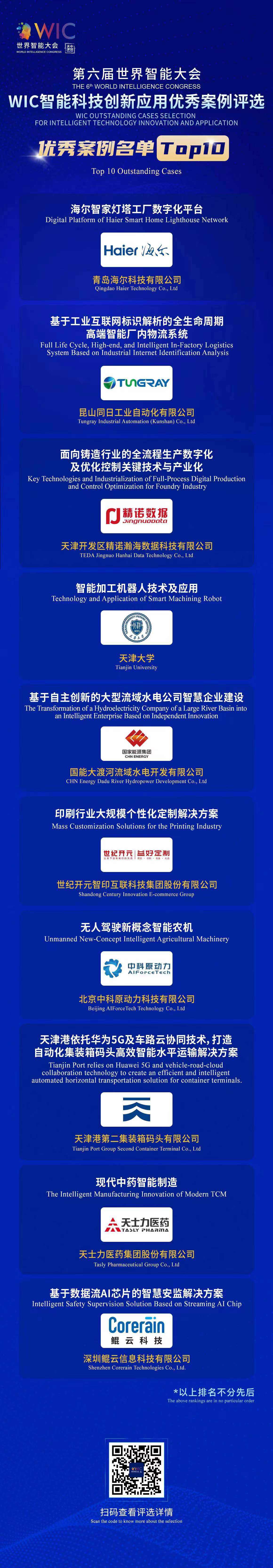 “WIC智能科技创新应用优秀案例”评选将成为打造永不落幕的世界智能大会的重要支撑和组成部分,成为天津发展智能科技产业的成果发布平台、标杆展示平台、项目聚集平台与人才交流平台,成为天津发展智能科技产业和赋能核心产业数字化、智能化升级的重要支撑。除智能制造领域外,下一届“WIC智能科技创新应用优秀案例”评选领域将更加广泛。(世界智能大会组委会)