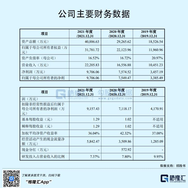 思科瑞成立于2014年,聚焦国防科技工业的半导体和集成电路、电子信息领域,主营业务为军用电子元器件可靠性检测服务,2019年至2021年,分别实现营收1.05亿元、1.66亿元、2.22亿元,同期归母净利润为3385万元、7549万元、9706万元,呈稳定的增长态势。预计上半年将实现营收1.28亿元至1.36亿元、归母净利润5813万元至6358万元。