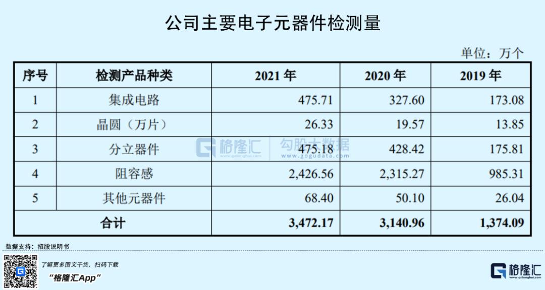 具体来看,可靠性检测筛选是思科瑞的主要收入来源,检测对象包括集成电路、晶圆、分立器件、组容感和其他元器件。可以说除了集成电路和晶圆检测属于高端芯片领域外,其他产品的检测都谈不上高难度技术,却占比检测量大头。
