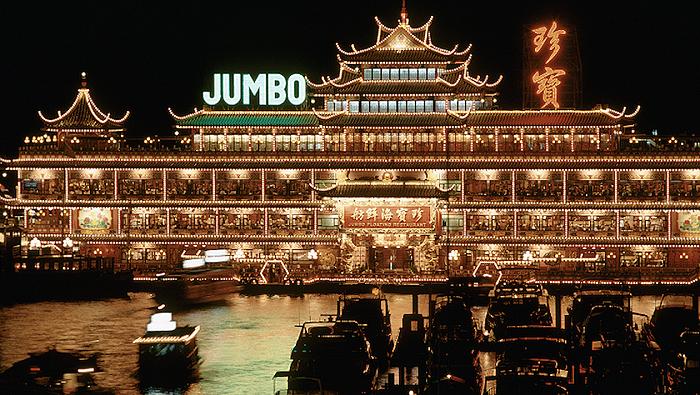 就像中环霓虹灯闪烁的摩天高楼一样,在香港仔避风塘停泊了45年的珍宝海鲜舫,折射着关于香港的黄金回忆。
