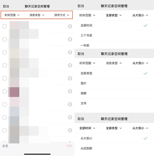 聊天记录也支持按照分类进行清理,比之前更加人性化和直观。