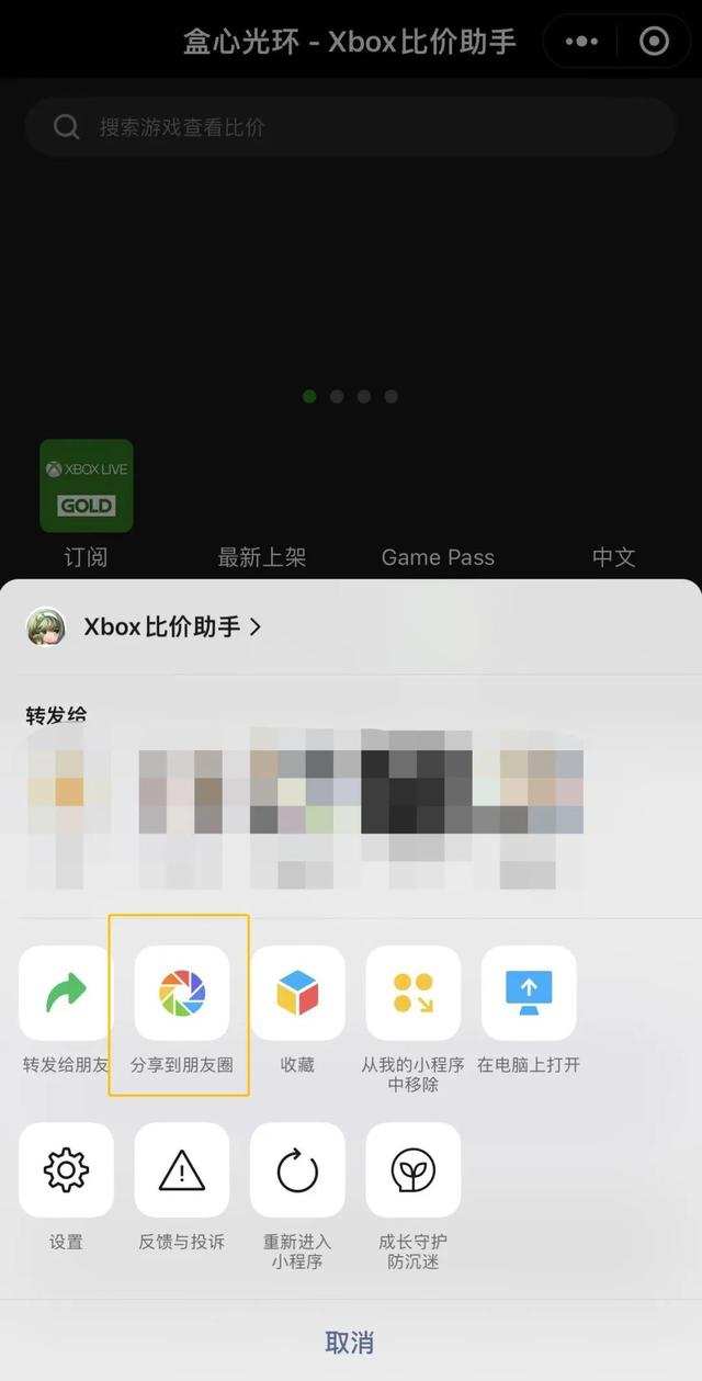 微信更新后,选择一个小程序,就能直接分享到朋友圈。