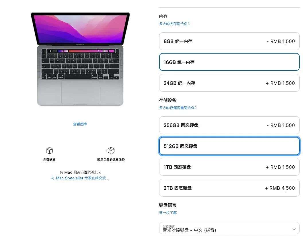 贴心的是,苹果官网上无论是内存加倍,还是存储加倍,均采用了均一的加价 1500 元。