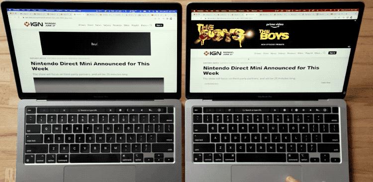 左:M2 MacBook Pro,右:M1 MacBook Pro 图片来自:MaxTech