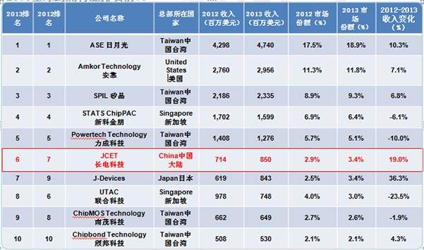 此时,长电科技排名为全球第六,年营收9.82亿美元,若顺利将星科金朋收入囊中,公司将直接跃升为全球第三大封测厂。