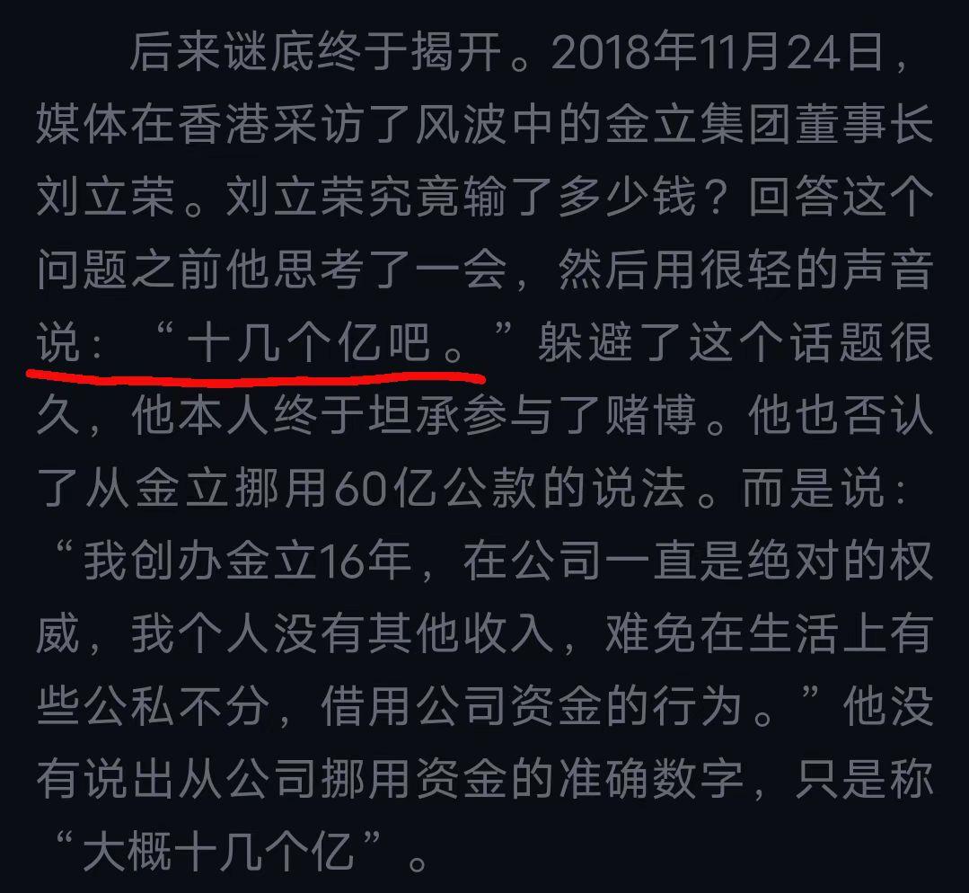 2018 年,有传闻刘立荣带上金立最后的流动资金,前往塞班豪赌,输掉了十几个亿,不仅让金立资金链危机日益加重,也直接导致金立上游供应商股价的大跌。
