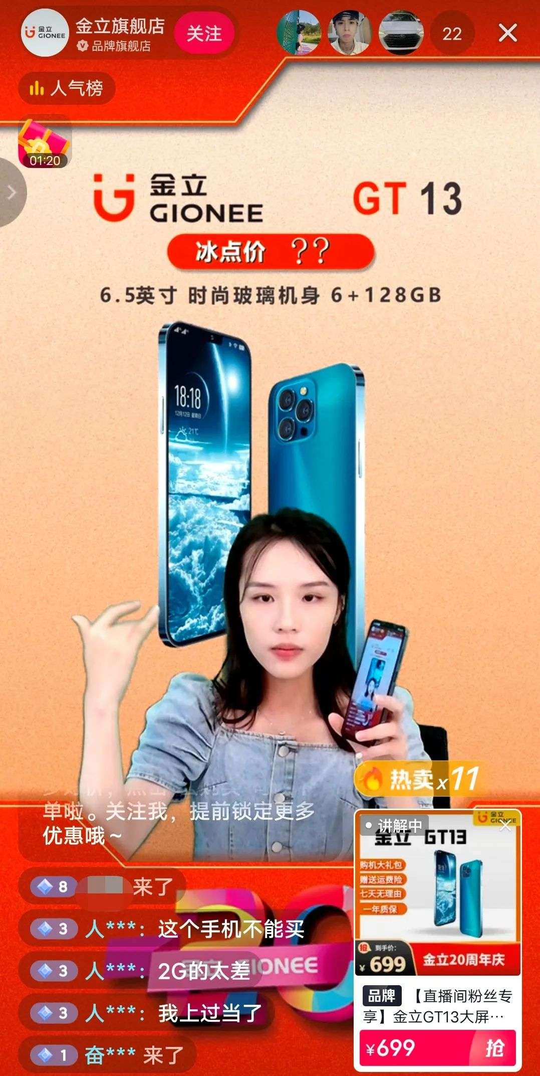 如今金立靠老年手机,勉强维持着,还在进行直播带货,但是人气不怎么高。
