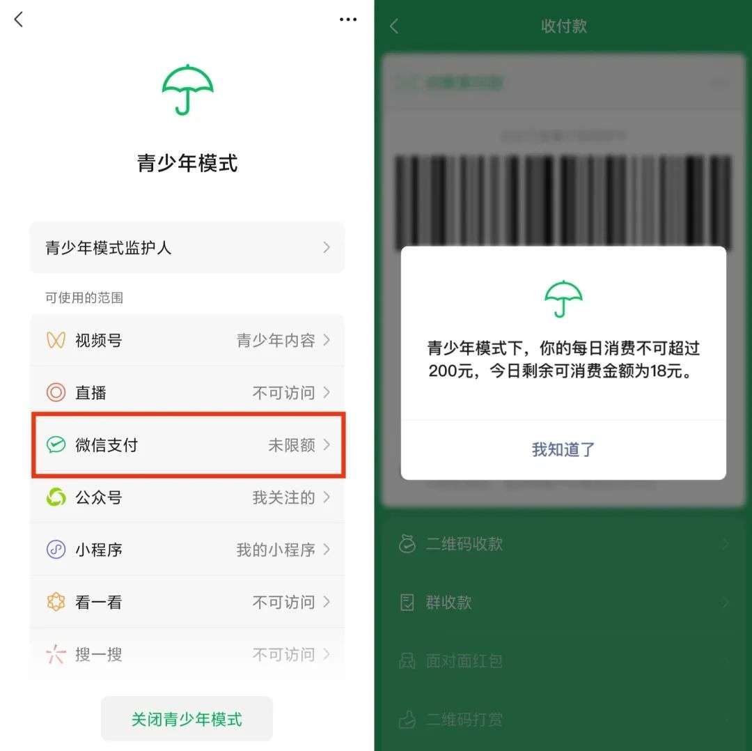 根据微信派的消息,青少年模式新增了一个爹妈狂喜的限额功能。