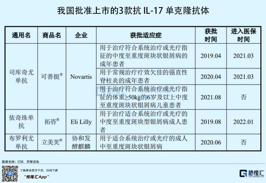鉴于IL-17靶点抗体药物目前来说是该领域疗效最好的药物,未来随着药品价格的下降和渗透率的提高,其市场空间较大。