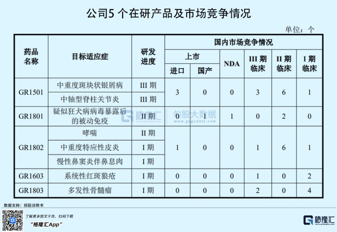 从研发进度来看,GR1501、GR1801、GR1802分别预计在2024年初、2025年、2026年获批上市。