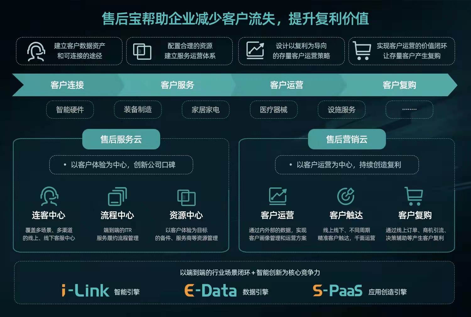 作为企业数字化转型的践行者与赋能者,售后宝提供智能化客户服务全流程管理解决方案,通过连接企业、履约方和消费者,将售后管理业务流数字化,帮助企业降本增效;通过存量客户精细化管理和产品全生命周期管理,为企业创造复利价值机会。依托智能化连接、云原生结构,通过端到端的服务运营体系,以客户需求为中心,售后宝打通客户连接、客户服务、客户运营、客户复购的全链路,提高客户NPS值,增加再转化价值,让服务也能创造收益。