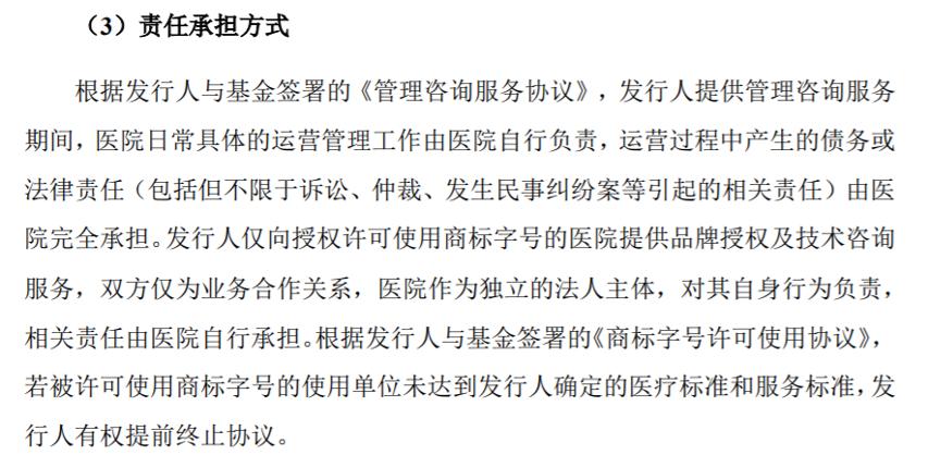 按照协议,爱尔眼科许可合作基金并购、新设的医院使用指定商标及“爱尔”字号从事眼科卫生医疗业务,并通过向相关医院提供医疗临床项目及经营管理的技术指导及咨询服务,获取技术咨询服务费。而医院作为独立的法人主体,需对运营过程中产生的债务或法律责任完全承担。