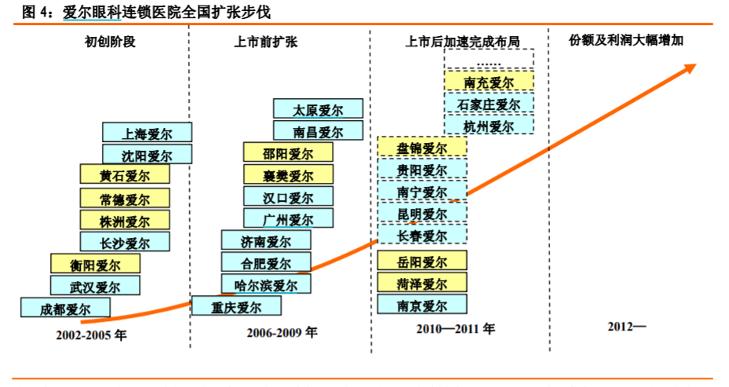 幸运的是,因为较高的专业化程度,陈邦的眼科医院越来越受到市场认可。2003年,爱尔眼科品牌正式创立,陈邦以连锁扩张模式,在长沙、成都、武汉等地启动新一轮“跑马圈地”,并将触角伸向上海、深圳等一线城市和湖北、湖南的三线城市。