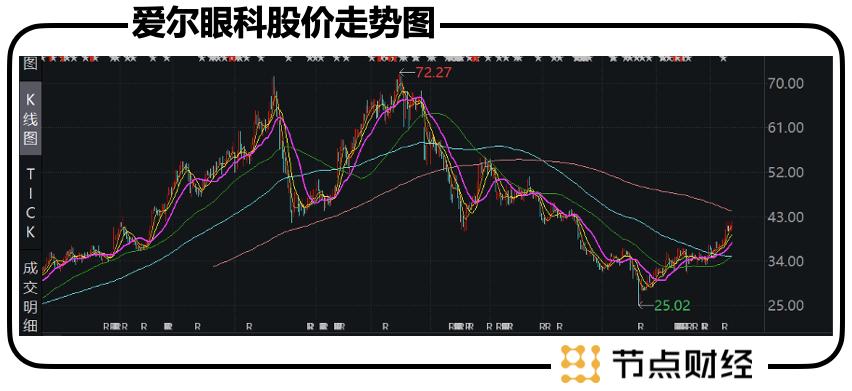 而在资本市场,宏观因素和个体因素双重击打,近一年来,爱尔眼科市值较高点缩水近一半,股价下跌超过42%。