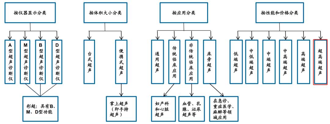 ▲常见的超声诊断仪分类方式(来源:《超声医学基础》、IHS Markit、国信证券经济研究所)