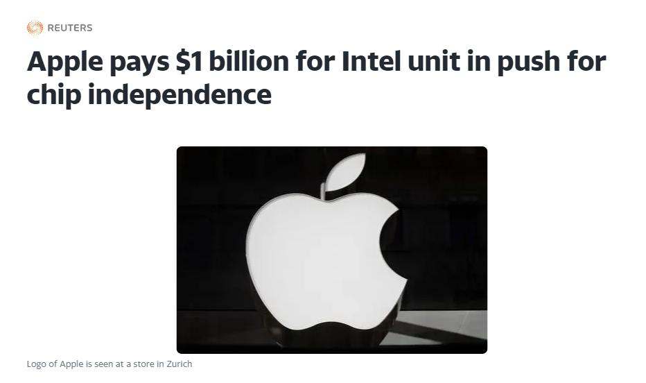 既然外面的供应商扶不起来,那么造芯自然成为了摆在明面上的事情。2019年下旬,苹果正式宣布斥资10亿美元完成了对英特尔基带业务的收购,以此加速自研基带的开发速度。