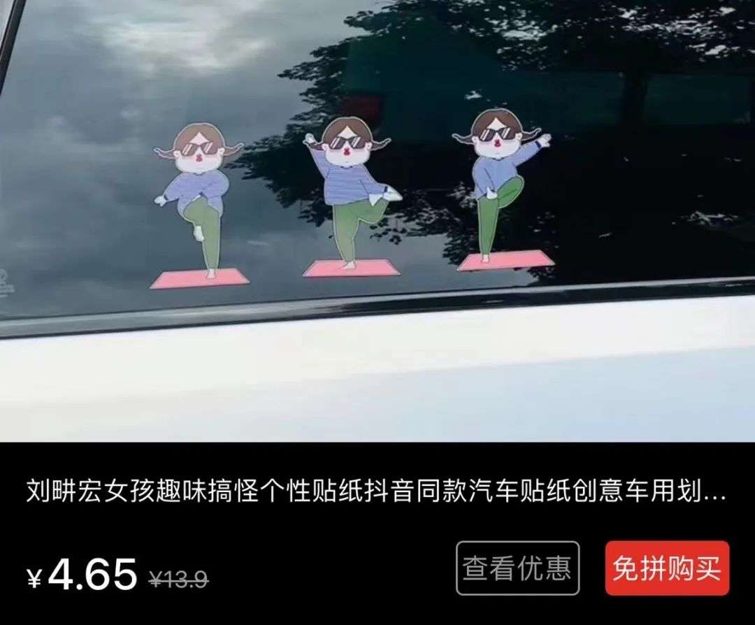 就有人把刘耕宏女孩,刘耕宏跳槽的动作、一些激励的语录卡通化,然后做成车贴在售卖,这就是商业的敏感性。