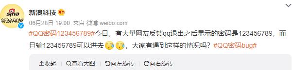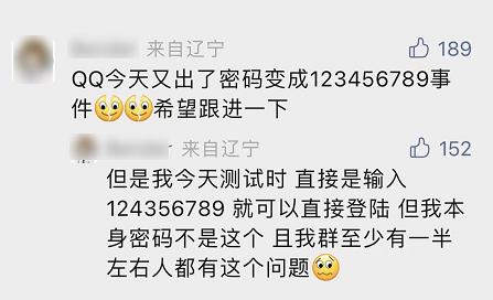 根据新浪科技的爆料,有大量 QQ 用户反馈,自己在退出 QQ 之后,退回到登录界面显示自己的 QQ 密码变成了 123456789 ,而且输入 123456789 是可以登录 QQ 的。