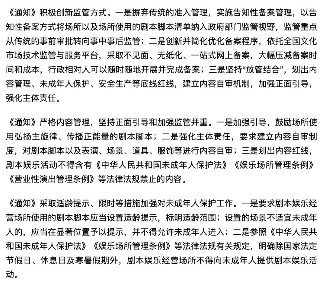 除明确经营范围、实行告知性备案外,更加严格的内容管理、对未成年人参与剧本杀、密室逃脱活动的时间限制是本次监管条例重点。