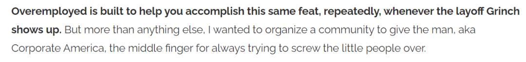 在此期间,Isaac P. 成立了这个名为「Overemployed」的社区。在他看来,Overemployed 是一种对冲裁员风险的有效方式。他在自述中写道,「我想组织一个社区,向美国企业界竖中指,因为他们总是试图欺负小人物。」