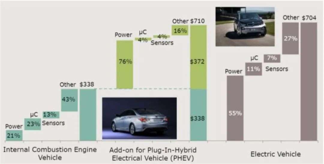 一辆新能源汽车中有300多颗芯片,其中过半是功率芯片。据Gartner数据显示,一辆新能源汽车中功率器件的成本高达387美元,占整车半导体价值的55%,远高于传统车71美元的成本。而在汽车功率芯片中又以IGBT的占比和成本居前,给功率芯片厂商带来无限想象空间。