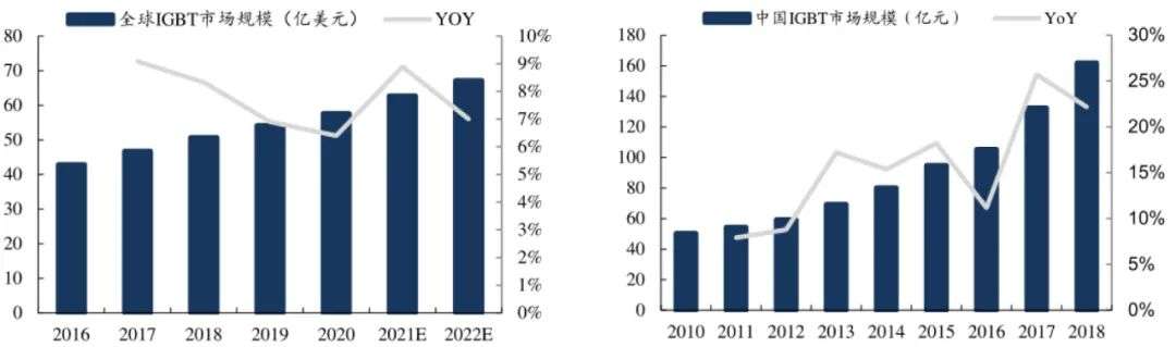 当前全球和中国的IGBT市场规模分别为60亿美元、24亿美元。这意味着,到2025年,仅仅是中国电动汽车领域的IGBT市场规模,就能达到目前国内IGBT的全部市场规模,年复合增长率超过20%。
