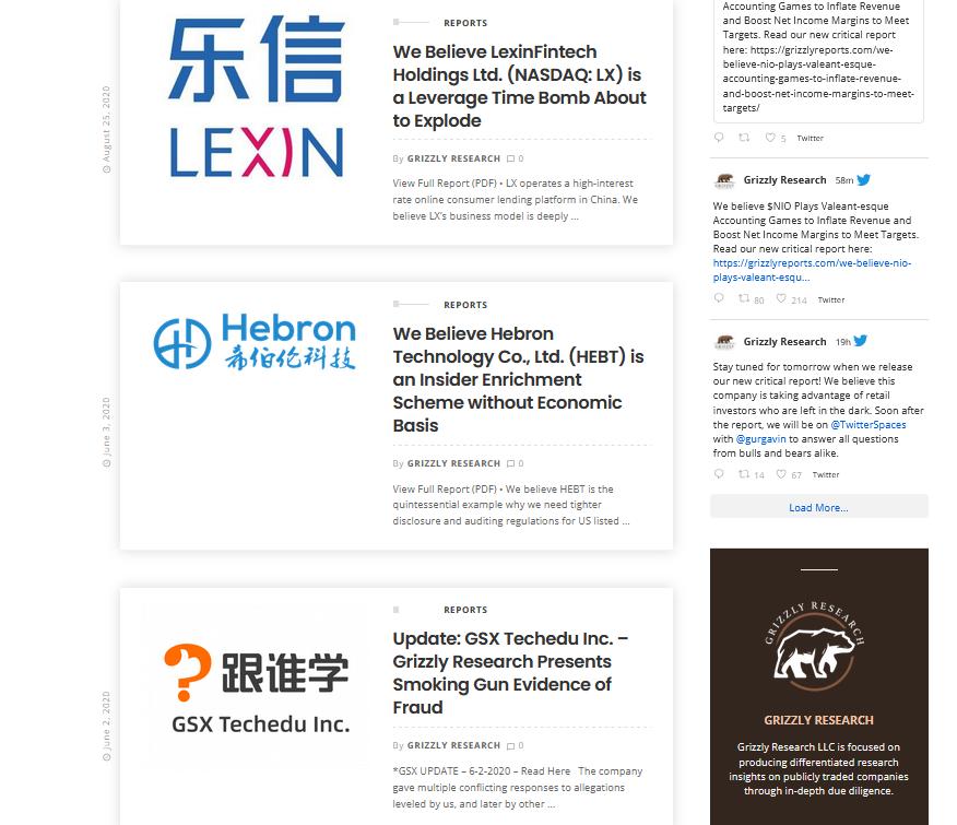 在灰熊的官网上,几乎一半的报告都与中概股有关,但几乎没有引起过较大的股价波动。
