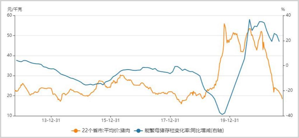 这并不稀奇,与当时国内仍旧低迷的大环境有关。2019年全国生猪出栏量、能繁殖母猪存栏量分别为5.44亿和2448万头,同比下降了21.6%和17.66%。