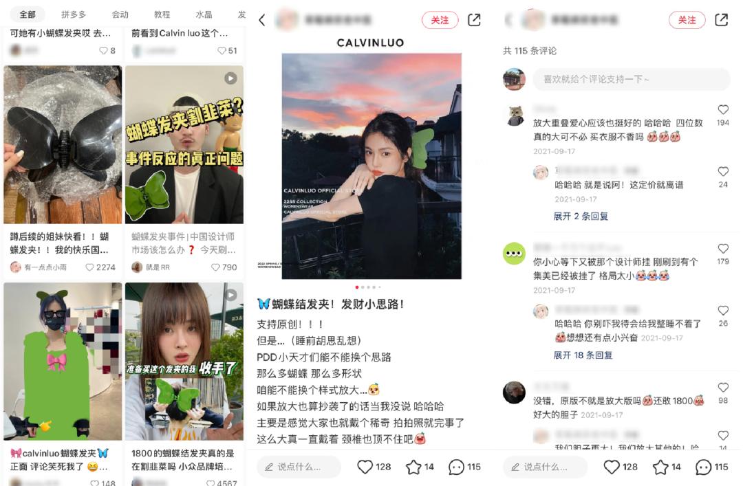 去年,拼多多店主因打版某爆款蝴蝶抓夹,被原创设计师挂到小红书,掀起一场关于买山买正的激烈讨论。一时间,“压力给到拼多多”“组团开模”等言论,引来正义网友的吐槽和斥责。