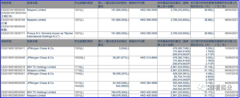 Naspers最早一次减持腾讯发生在2018年3月。当时,它以405港元/股的价格减持了 189978300股腾讯股票,约占腾讯2% 的股份,共套现约 106 亿美元。