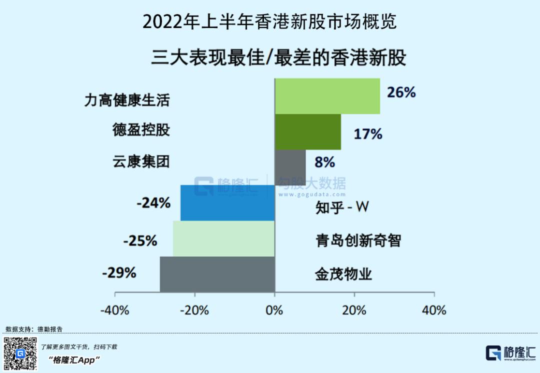 从新股表现来看,今年上半年新股的平均上市首日回报率回落至负数,远低于去年同期的31.1%,涨幅前三为力高健康生活、德盈控股、云康集团,分别上涨约26%、17%和8%;跌幅前三为金茂服务、创新奇智、知乎-W,分别下跌约29%、25%、24%。