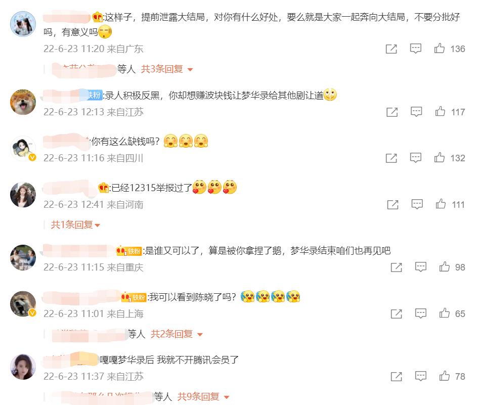 显然,并非所有用户都买账,即便付费的对象是红极一时的“顾盼生辉”。在“梦华录大结局点映礼”相关话题下,有部分网友直言:“看完梦华录就取消鹅的会员续费了。”“拒绝超点,看完之后不会续费”。